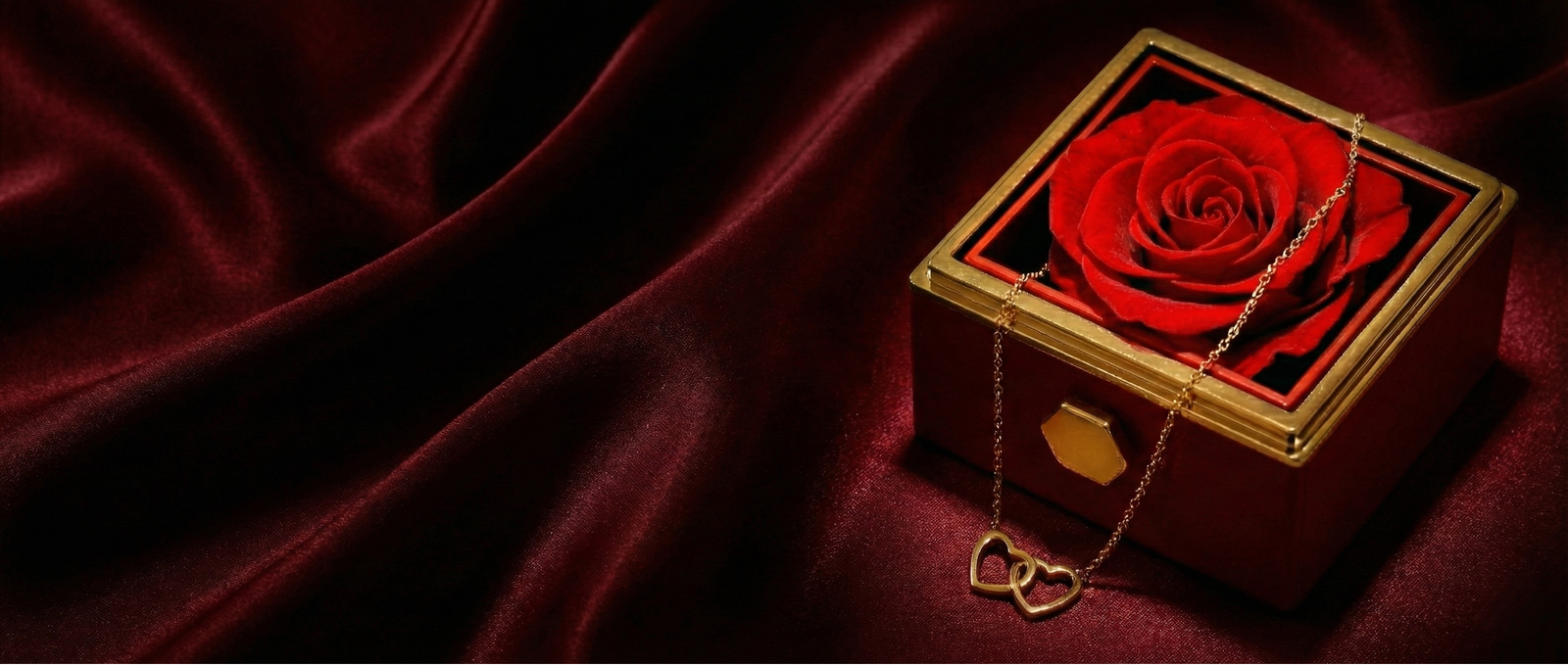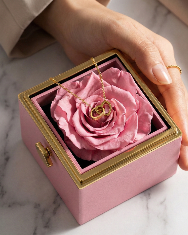 Geschenkdoos met Eeuwige Roos en Dubbele Hartjesketting